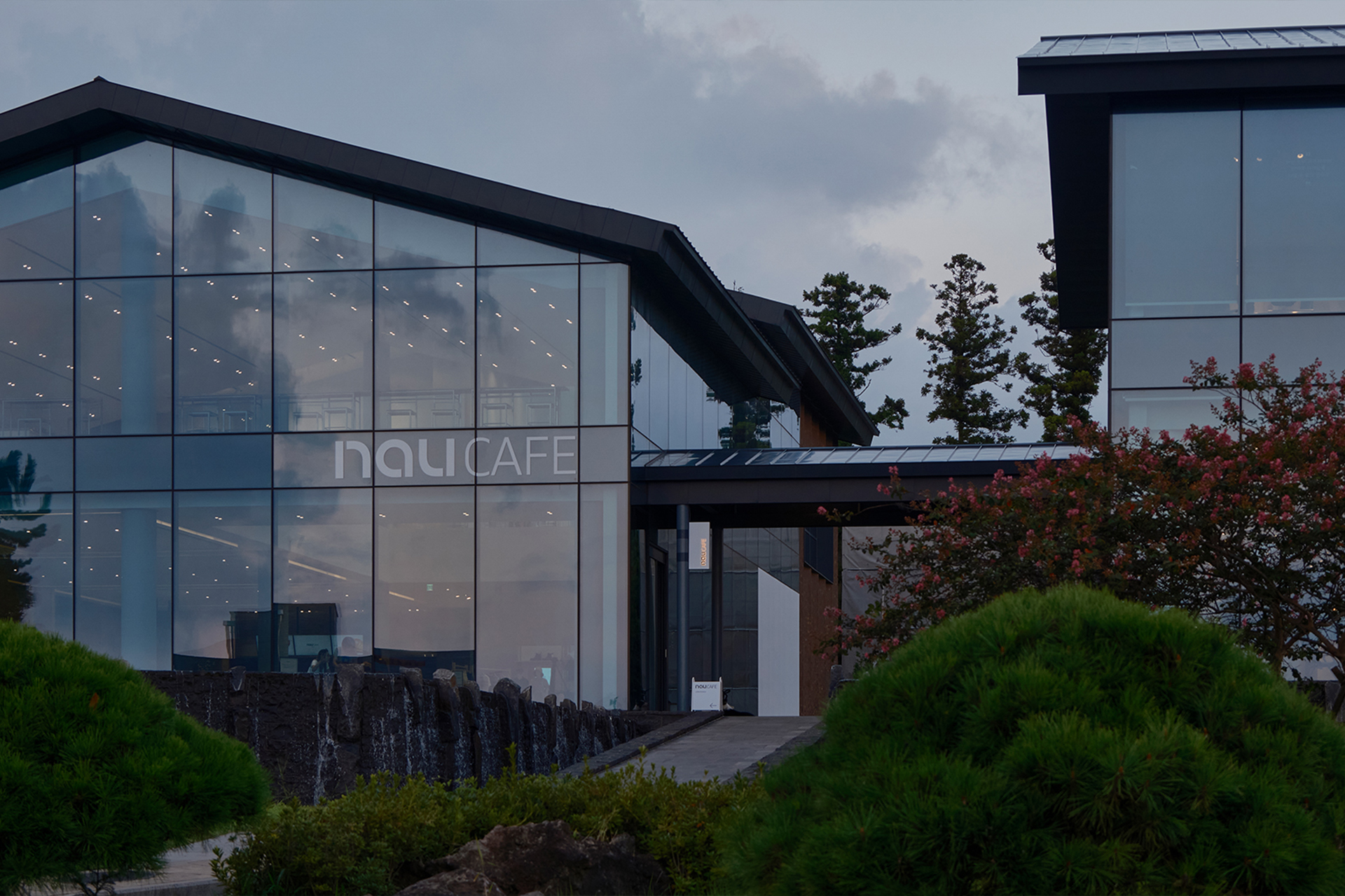 산, 바다, 숲이 펼쳐지는 제주의 대자연 속, 사방이 유리로 설계된 건축물에 자리한 나우 카페 제주는 자연과 인간의 경계에서 균형있는 일상의 가능성을 탐색하며, 브랜드 철학을 입체적으로 구현합니다.