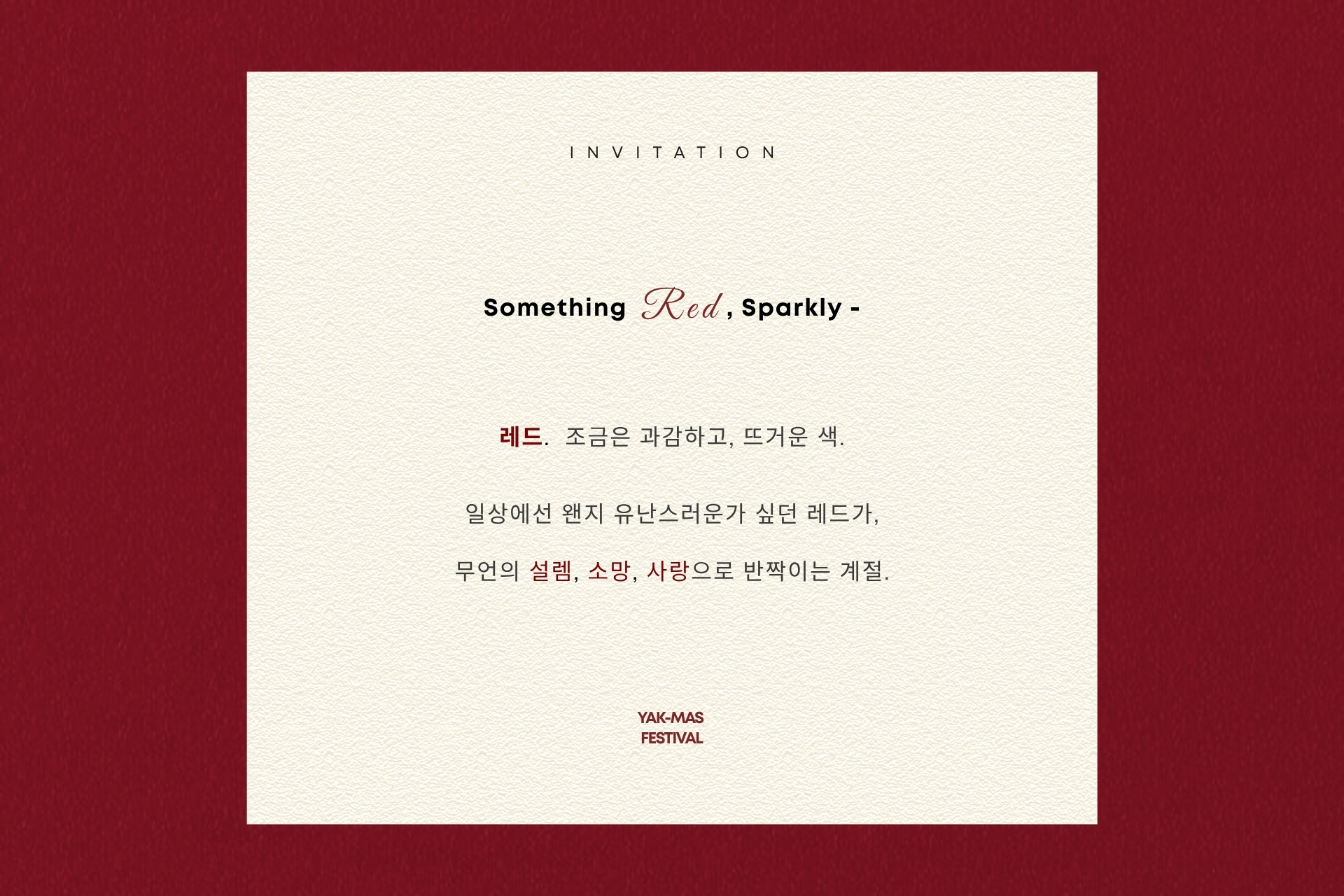 Something Red, Sparkly : 수많은 결 속에 빛과 색, 형태와 시간, 감정이 쌓여 비로소 완성되는 여정 *굿즈존 & 체험존 운영